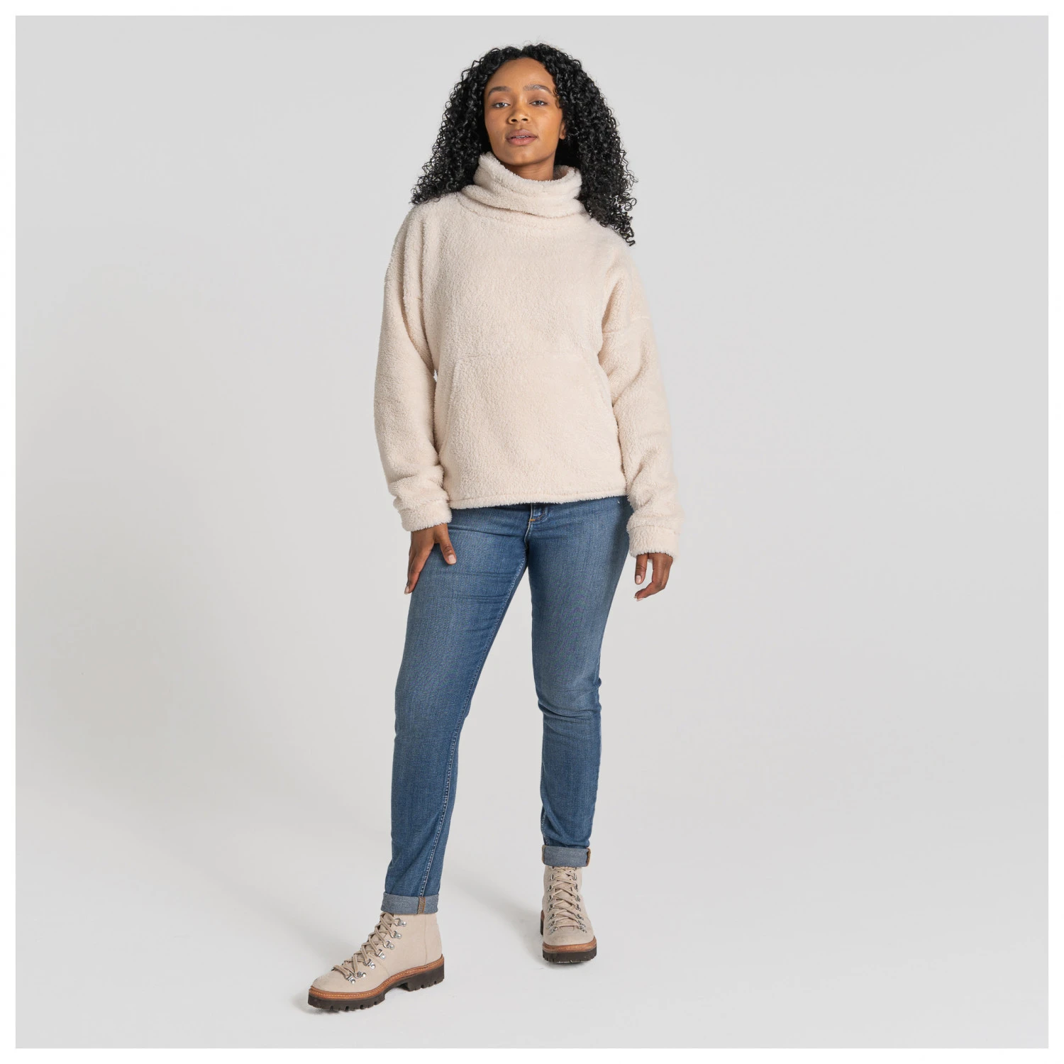 Wenns Dir noch an einem bequemen Kleidungsstück für kältere Tage fehlt, dann bist Du beim Women’s Inessa Pullover von Craghoppers genau richtig. Dieser Fleecepullover bringt alles mit, was es für maximalen Komfort in der Freizeit braucht. Das Material ist dabei angenehm weich und fühlt sich auch direkt auf der Haut angenehm an. Außerdem wirkt es wärmend. Durch den hochgezogenen Kragen sind Hals und Nacken dabei immer bestens vor Kälte und Zugluft geschützt. Die praktische Kängurutasche lockert das Design des Pullovers ein wenig auf und bietet Dir gleichzeitig ausreichend Platz für diverse Kleinteile. Zusätzlich kannst Du hier selbstverständlich auch Deine Hände wärmen.