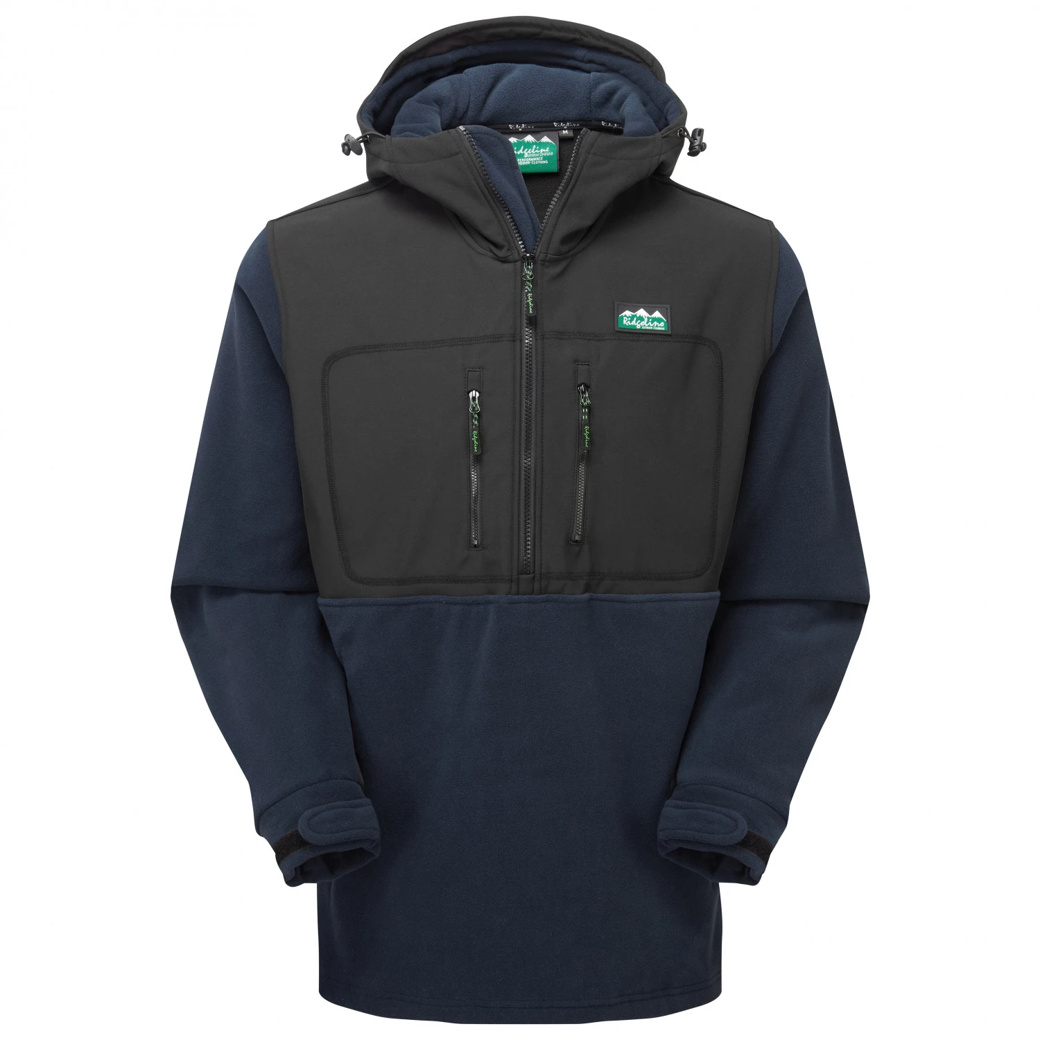 Der Hoody kombiniert mehrere Materialien miteinander: Softshell und Fleece.